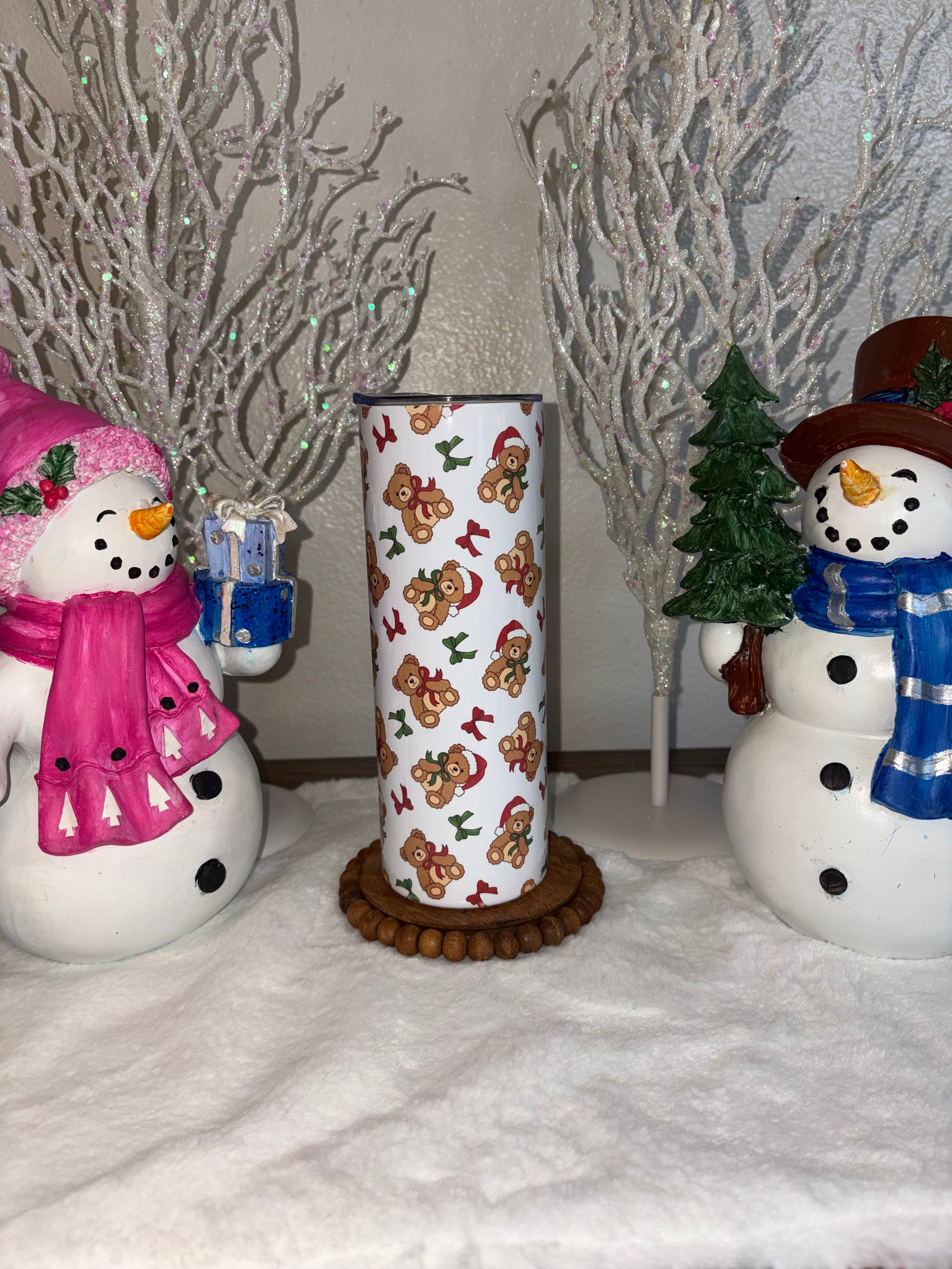 Covered in charming Christmas teddy bears surrounded by festive details, this 20 oz tumbler delivers pure cozy vibes. Durable, lightweight, and perfect for everyday use, it’s ideal for holiday errands, winter mornings, or cuddling up at home with a blanket.