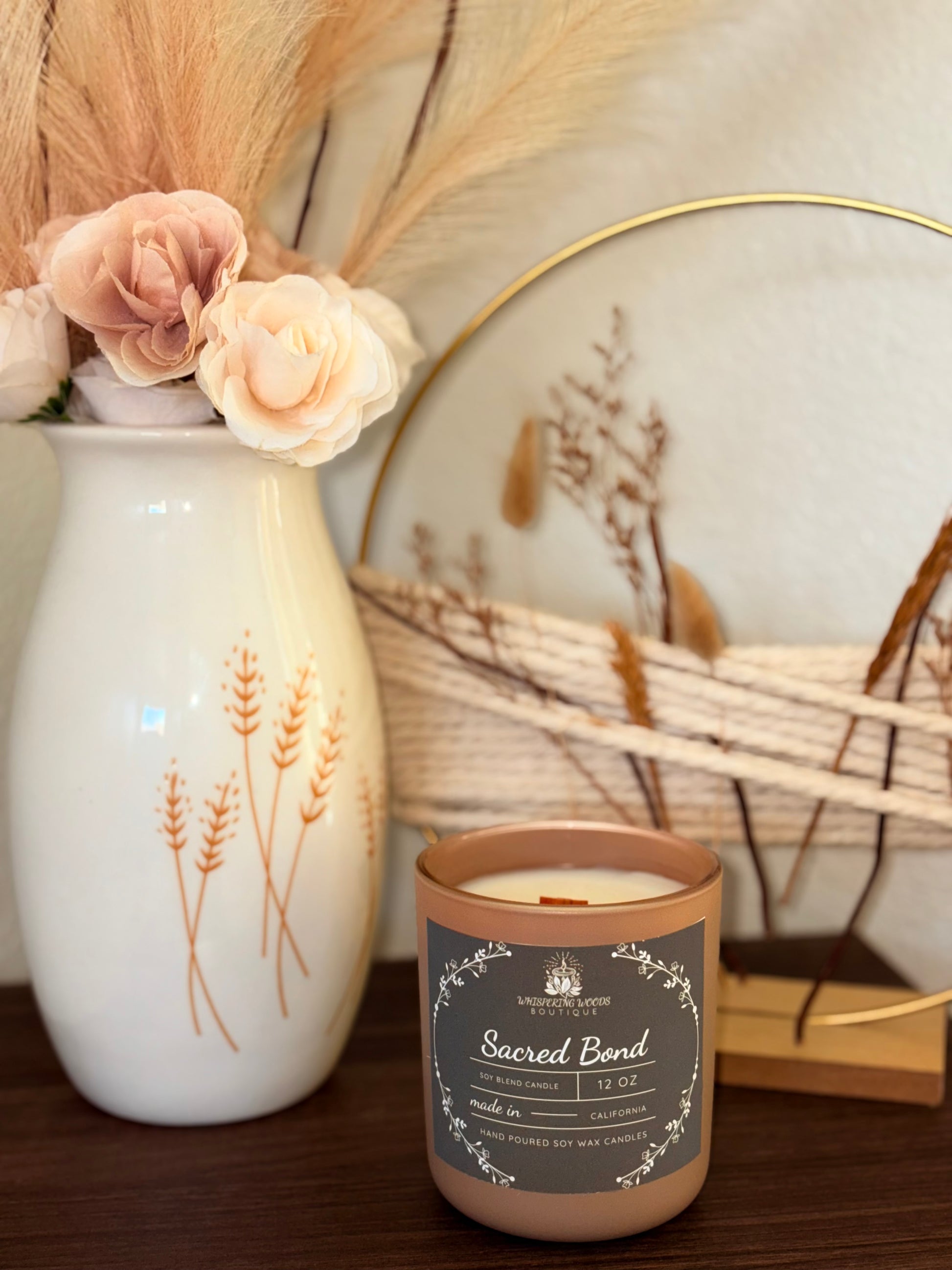 Ignite your senses with Sacred Bond, a bold and captivating blend of wood and sweet musk. This candle crackles with the raw intensity of burning embers, softened by the rich, golden glow of amber resin. Shadowed Flame burns deep, leaving behind a trail of mystery and warmth.