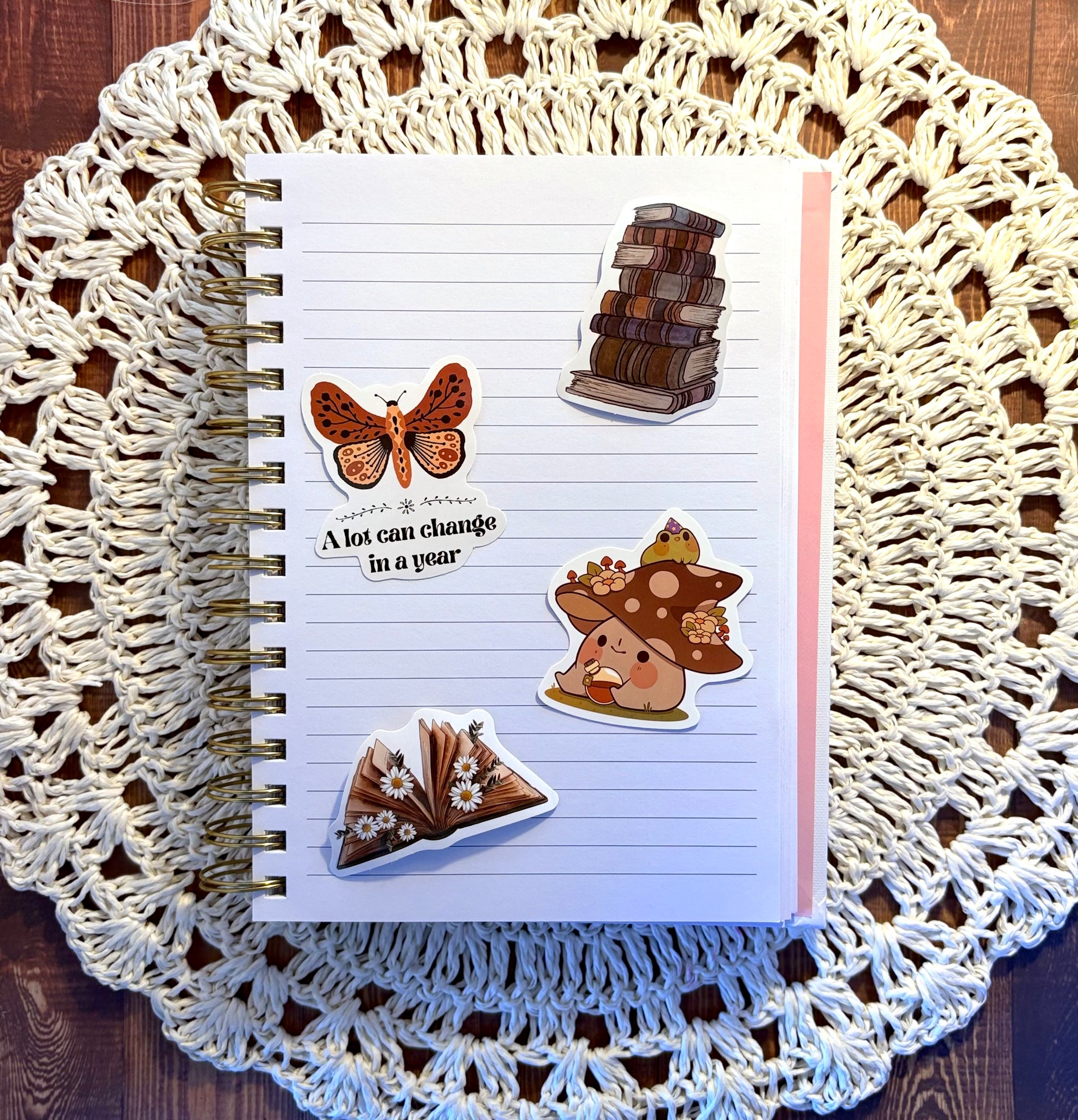 Decorate your journal or kindle with our cute sticker set. Featuring four cute stickers a perfect addition to your pages, planners, or crafts. Stickers vary in size.