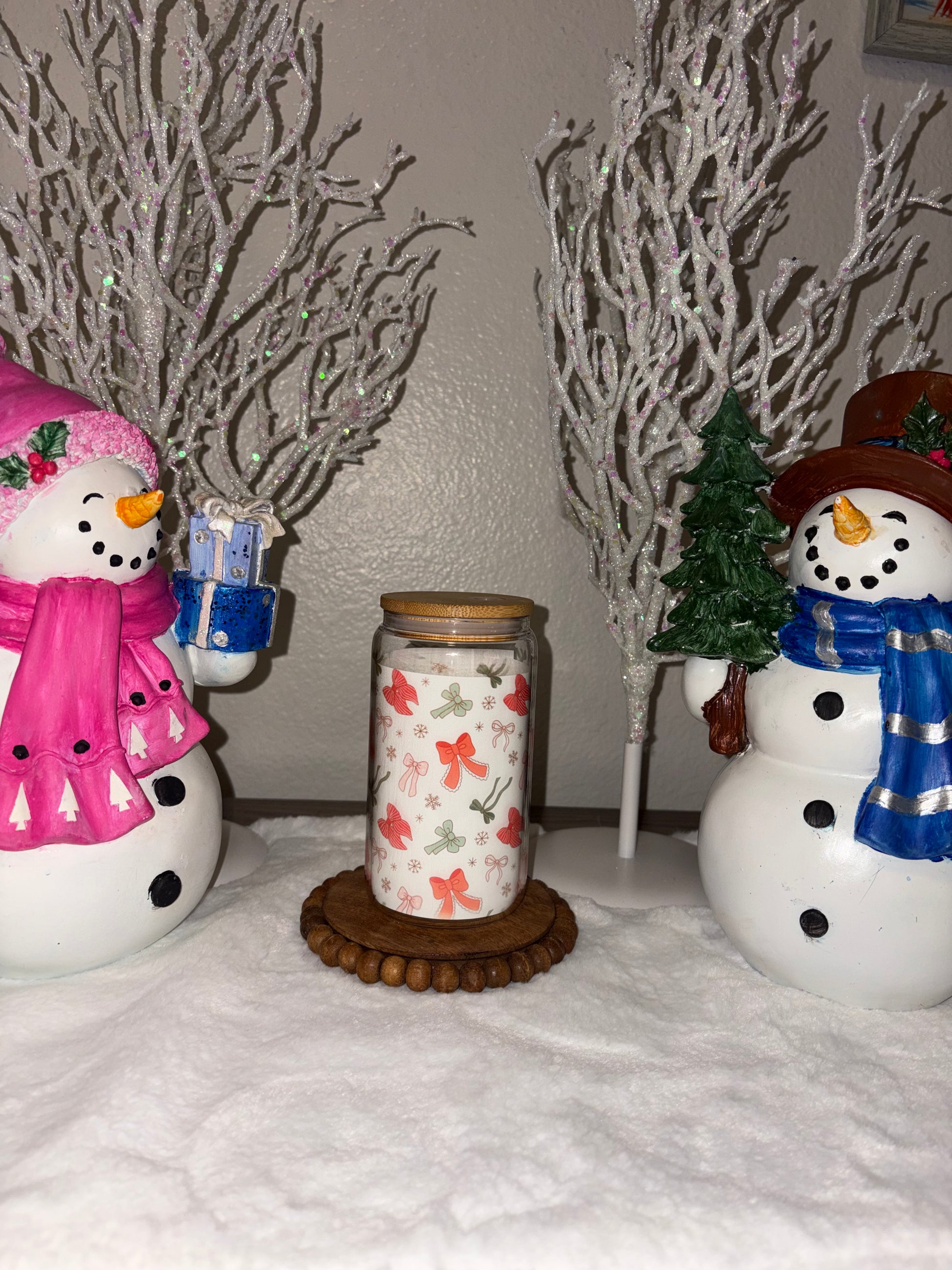 Add a touch of soft holiday charm to your drinks with our Christmas Bows 12oz glass cup. Featuring a delicate pattern of red, green, and neutral holiday bows, this cup brings a cute, classic Christmas look to every sip.
