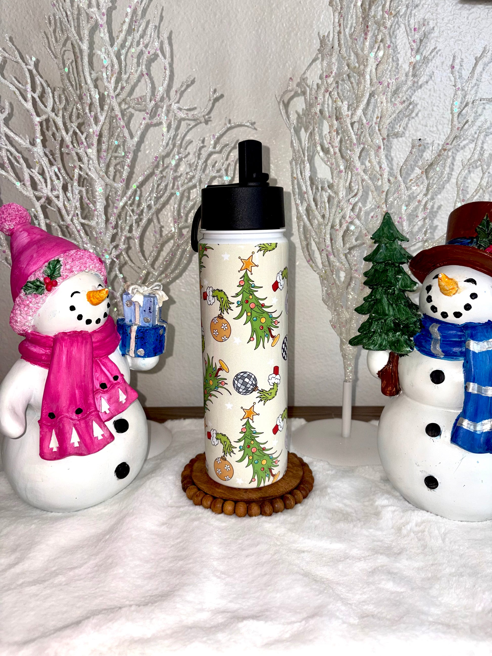 Wrapped in vibrant Grinch artwork, this insulated 22oz bottle keeps drinks perfectly chilled while adding a playful holiday touch to your day. Durable, lightweight, and ready for everyday use from the gym to Christmas movie nights.