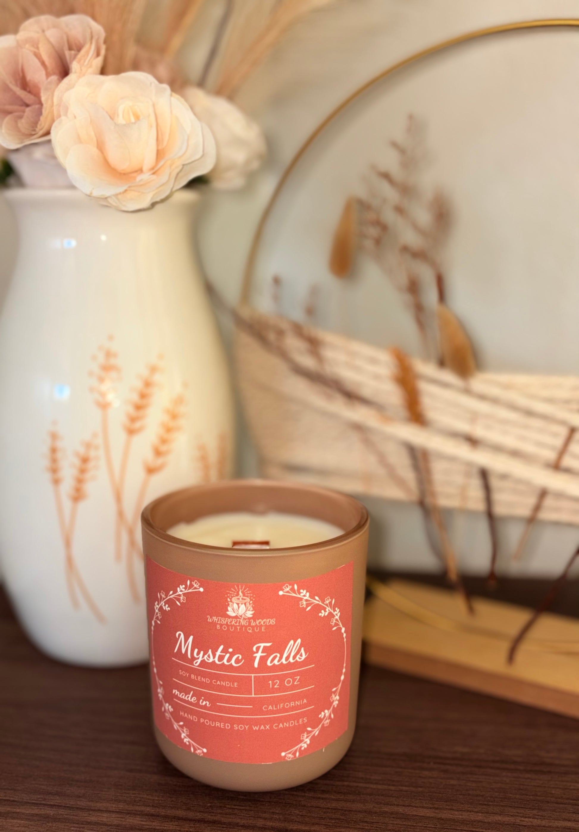 Step into a hidden glen where ancient trees whisper secrets and the air is thick with the scent of smoldering wood and warm sandalwood. Mystic Falls captures the magic of twilight forests. Light this candle to summon the mystery of the woods and let its soothing glow carry you away to a place where magic and nature entwine.