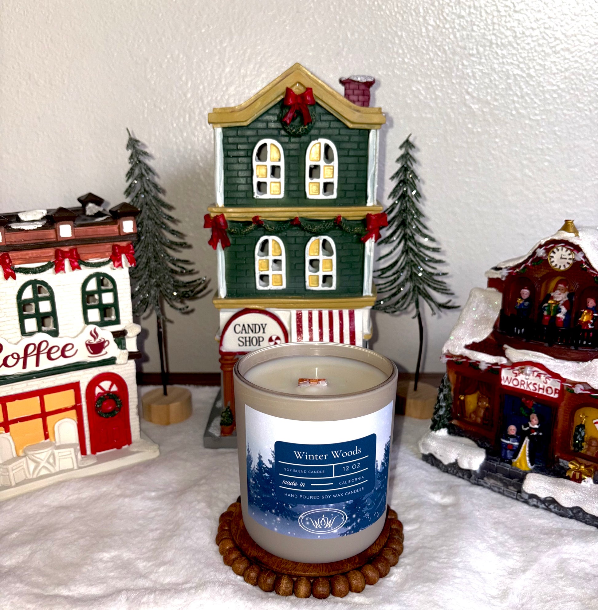 - Single wood wick candle.